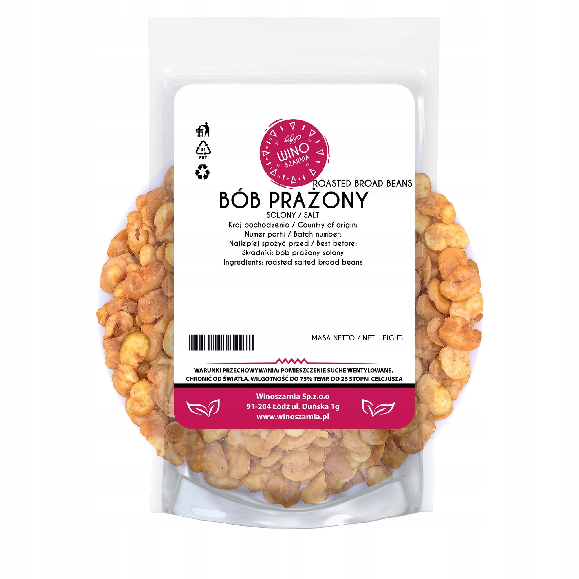 - Składniki: bób prażony, olej roślinny, sól 1%